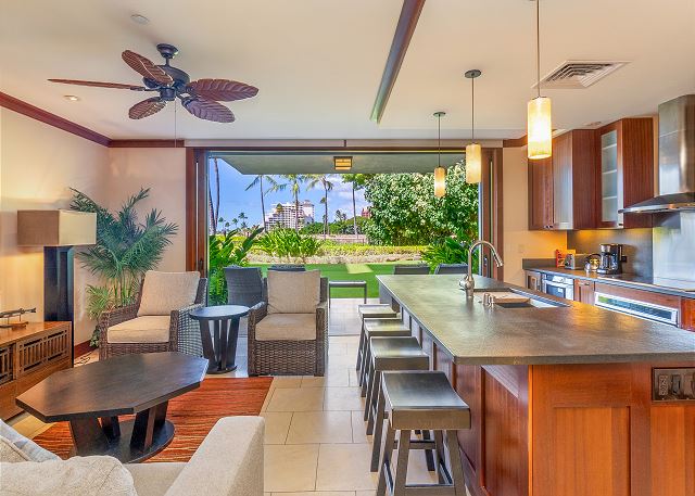 combination tub/shower, king, outdoor shower, shower, toilet, tub, twin/ single, marina, water parks, Child's Highchair, Satellite / Cable, Television, Air Conditioning, Clothes Dryer, Elevator, Fitness Room / Equipment, Garage, Hair Dryer, Internet, Iron & Board, Linens Provided, Living Room, Parking, Telephone, Towels Provided, Washing Machine, Wifi, Free Wifi, Coffee Maker, Dishes & Utensils, Dishwasher, Kitchen, Microwave, Oven, Pantry Items, Refrigerator, Stove, Toaster, luaus, Beach View, Ocean View, Balcony, Golf, Communal Pool, Heated Pool, Hot Tub, bedroom, golf, snorkeling, swimming, children welcome, non smoking only, pets not allowed, wheelchair accessible, flexible, recommended, Dining Area, Housekeeper Optional, Away From It All, Family, Enhanced cleaning practices, Clean with disinfectant, High touch surfaces cleaned with disinfectant, Towels and bedding washed in water that's at least 60sC/140sF, SafeStay (AHLA - USA)